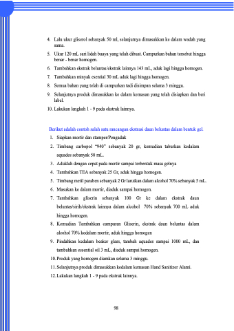 8. Kemudian Tambahkan campuran Gliserin, ekstrak daun beluntas dalam