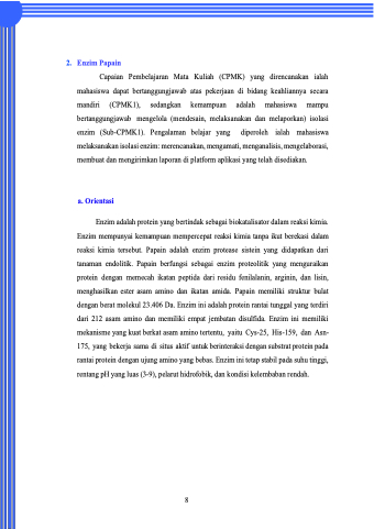 reaksi kimia tersebut. Papain adalah enzim protease sistein yang didapatkan dari