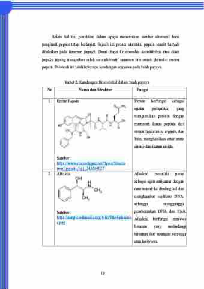 Tabel 2. Kandungan Biomolekul dalam buah papaya