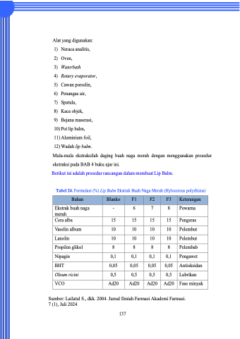 Tabel 24. Formulasi (%) Lip Balm Ekstrak Buah Naga Merah (Hylocereus polyrhizus)