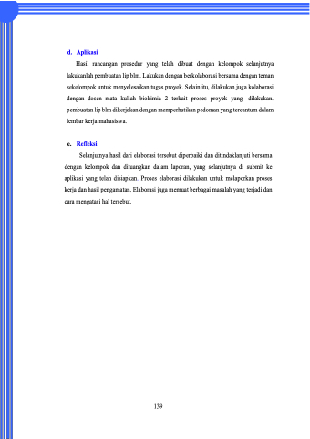 kerja dan hasil pengamatan. Elaborasi juga memuat berbagai masalah yang terjadi dan