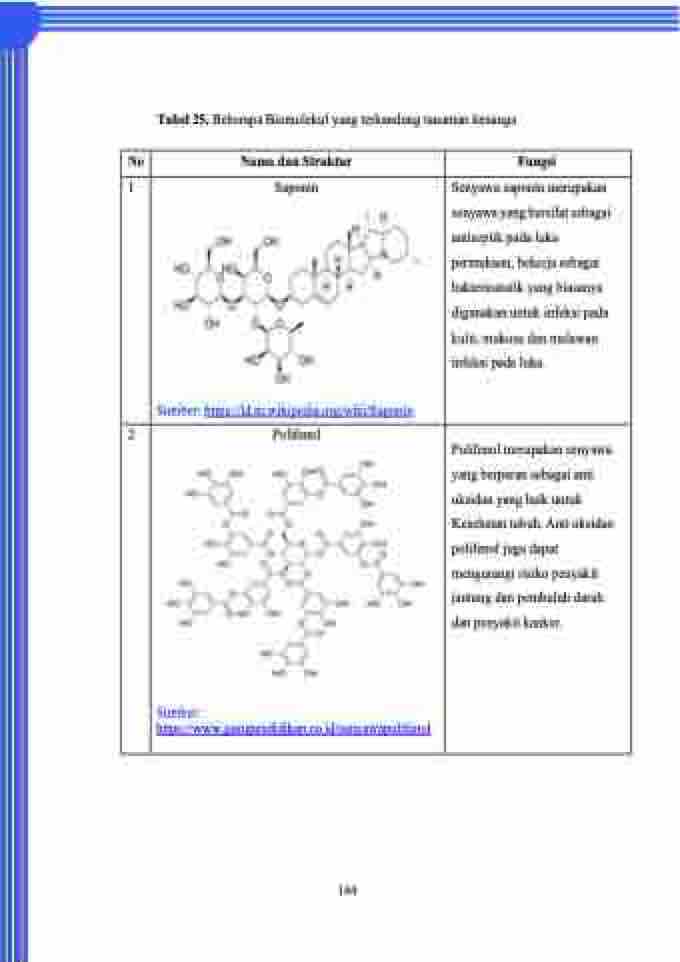 Tabel 25. Beberapa Biomolekul yang terkandung tanaman kenanga