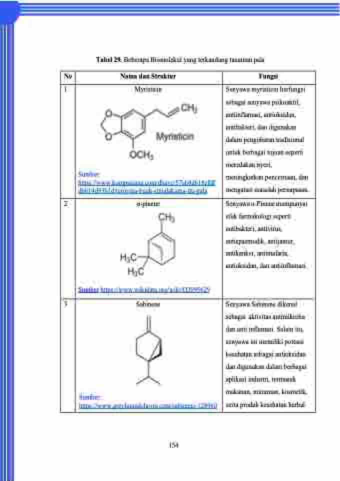 Tabel 29. Beberapa Biomolekul yang terkandung tanaman pala