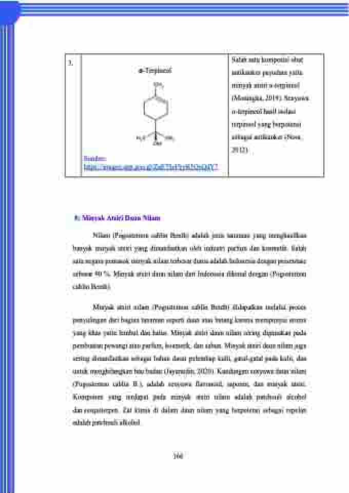 dan sesquiterpen. Zat kimia di dalam daun nilam yang berpotensi sebagai repelan