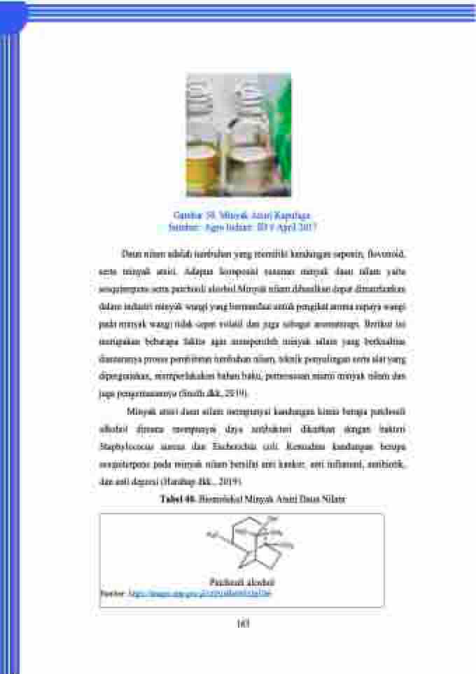 sesquiterpene serta patchouli alcohol.Minyak nilam dihasilkan dapat dimanfaatkan