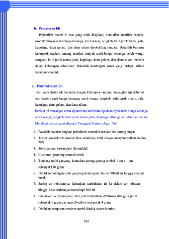 Berikut ini rancangan untuk uji aktivitas anti bakteri pada minyak atsiri bunga kenanga,