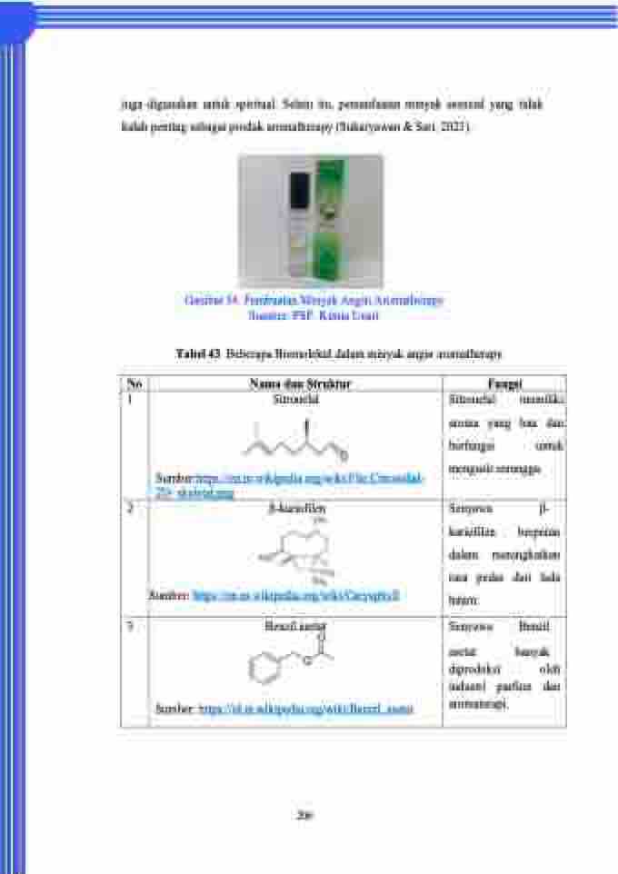 Tabel 43. Beberapa Biomolekul dalam minyak angin aromatherapy