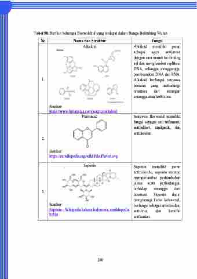 Tabel 50. Berikut beberapa Biomolekul yang terdapat dalam Bunga Belimbing Wuluh