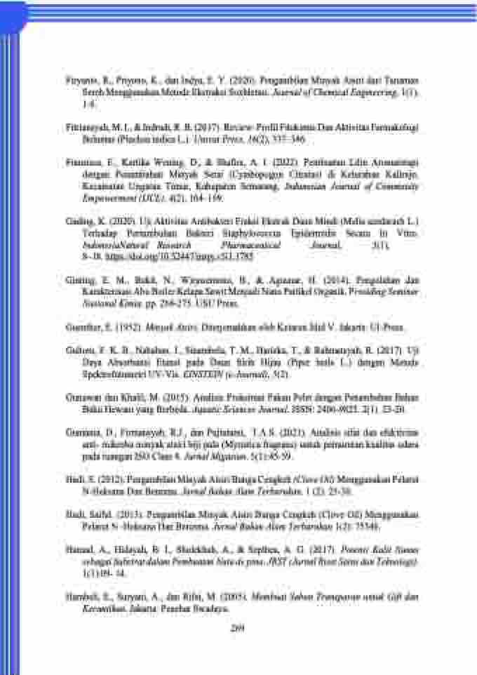 Firyanto, R., Priyono, K., dan Indya, E. Y. (2020). Pengambilan Minyak Atsiri dari Tanaman