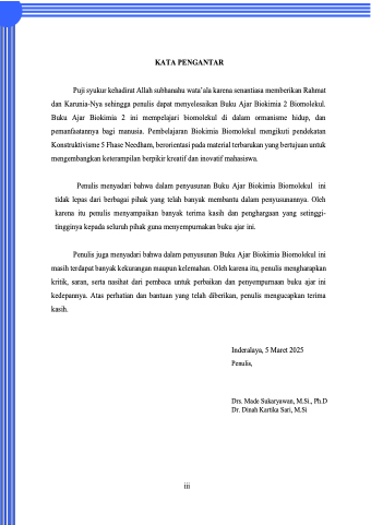 Penulis menyadari bahwa dalam penyusunan Buku Ajar Biokimia Biomolekul ini
