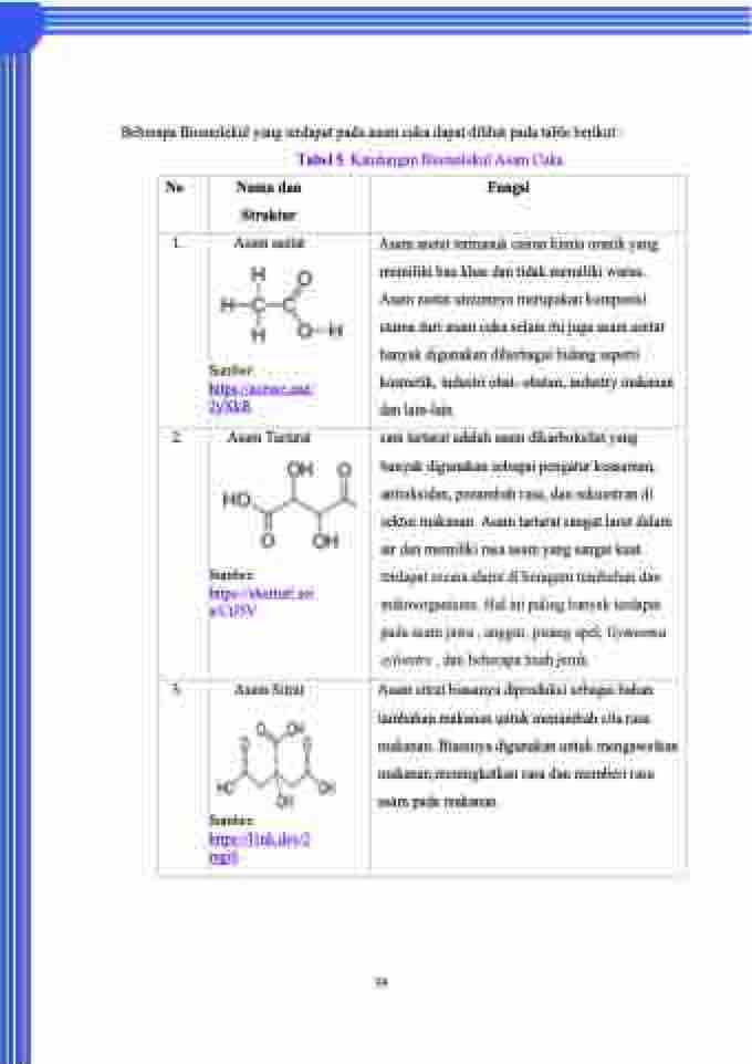 Beberapa Biomolekul yang terdapat pada asam cuka dapat dilihat pada table berikut :