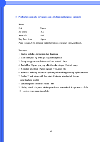 5) Pembuatan asam cuka berbahan dasar air kelapa melalui proses enzimatik