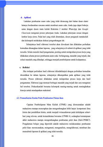Pengalaman belajar yang diperoleh adalah mahasiswa melaksanakan pembuatan