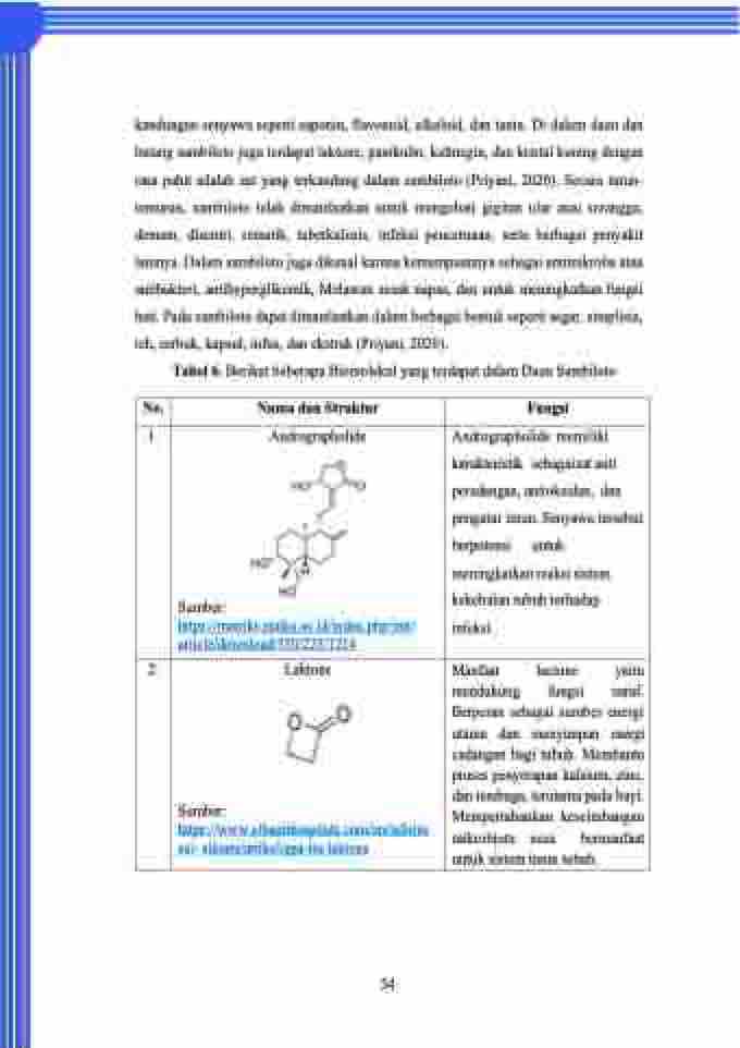 Tabel 6. Berikut beberapa Biomolekul yang terdapat dalam Daun Sambiloto