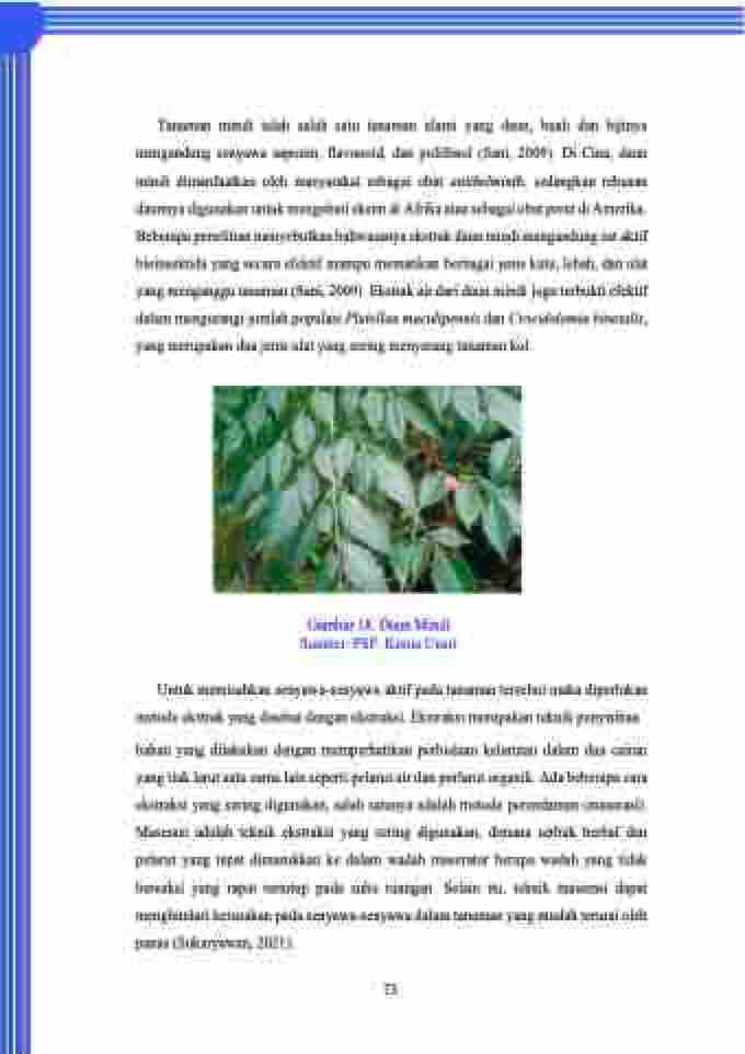 Beberapa penelitian menyebutkan bahwasanya ekstrak daun mindi mengandung zat aktif