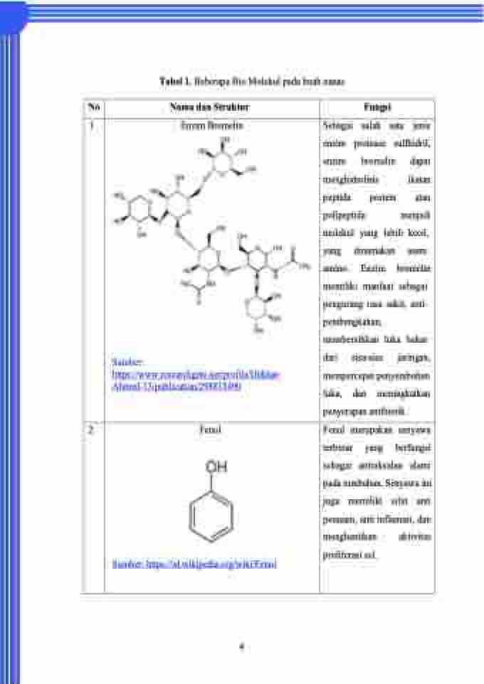 Tabel 1. Beberapa Bio Molekul pada buah nanas
