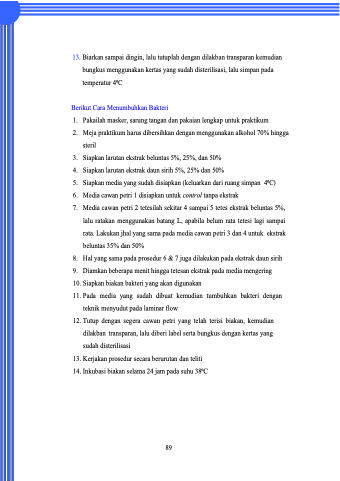 11. Pada media yang sudah dibuat kemudian tumbuhkan bakteri dengan