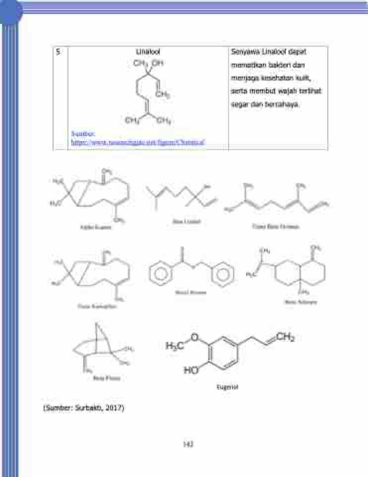 5 Eugenol (Sumber: Surbakti, 2017) 142 Linalool Sumber: https://www.researchgate.net/figure/Chemical Senyawa Linalool dapat mematikan bakteri dan menjaga kesehatan kulit, serta membut wajah terlihat segar dan bercahaya.
