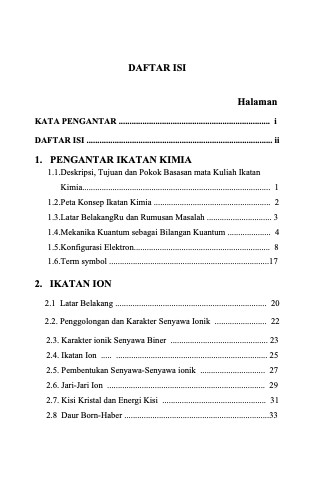 1.1.Deskripsi, Tujuan dan Pokok Basasan mata Kuliah Ikatan Kimia....................................................................................... 1 1.2.Peta Konsep Ikatan Kimia ...................................................... 2
