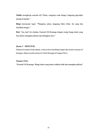 Nabila (menghirup esensial oil):“Hmm, wanginya enak banget, langsung ngeredain