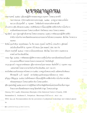 สุกัญญา ปริสัญญกุล. (๒๕๕๔).ประสิทธิผลของการใช้แนวปฏิบัติทางคลินิกสำาหรับการป้องกันการตกเลือด