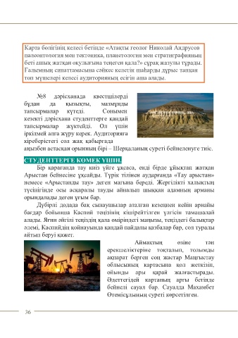 Карта бөлігінің келесі бетінде «Атақты геолог Николай Андрусов