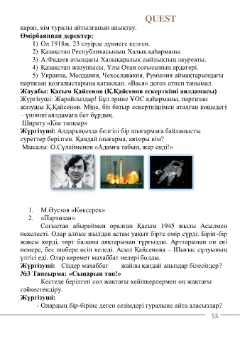4) Қазақстан жазушысы, Ұлы Отан соғысының ардагері.