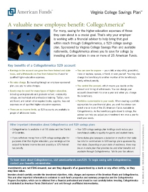 • CollegeAmerica is available in all 50 states and the District • Your 529 college savings plan holdings could reduce your
