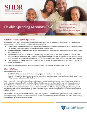 You have the opportunity to enroll in a Flexible Spending Account (FSA) for your out-of-pocket health care or dependent