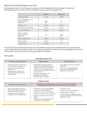 and dependent daycare expenses. Here’s an example of how you could save through an FSA: