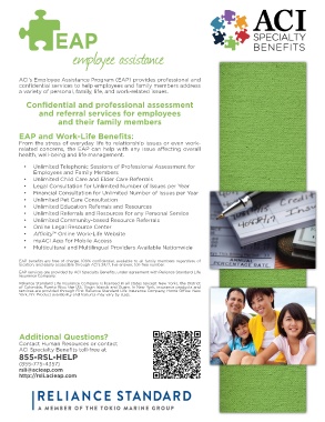 EAP services are provided by ACI Specialty Benefits, under agreement with Reliance Standard Life