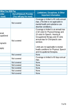 If you need help Rehabilitation services Not covered annual max for Chiropractic care