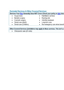 Services Your Plan Generally Does NOT Cover (Check your policy or plan document for more information and a list of any other excluded services.)