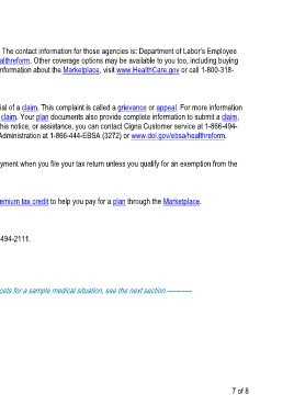 appeal, or a grievance for any reason to your plan. For questions about your rights, this notice, or assistance, you can contact Cigna Customer service at 1-866-494-