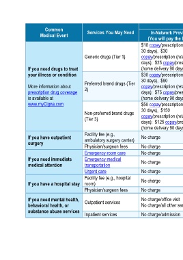 Medical Event In-Network Provider Out-of-Network Provider Important Information