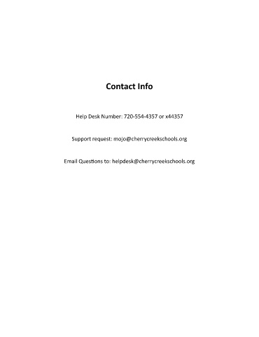 Contact Info Help Desk Number: 720-554-4357 or x44357 Support request: mojo@cherrycreekschools.org Email Questions to: helpdesk@cherrycreekschools.org