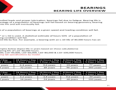 BEARING LIFE STANDARDS (The examples below depict life in years based on these calculations)