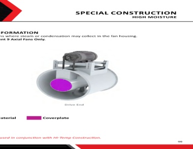 High Moisture Modification Construction is used on applications where steam or condensation may collect in the fan housing.