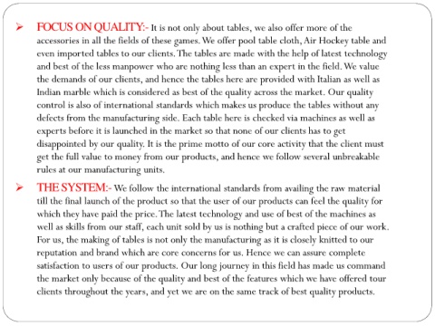 FOCUS ON QUALITY:- It is not only about tables, we also offer more of the