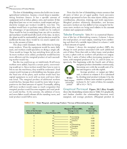 TABLE 20.1 Total, Marginal, and Average Product: The Law of Diminishing Returns