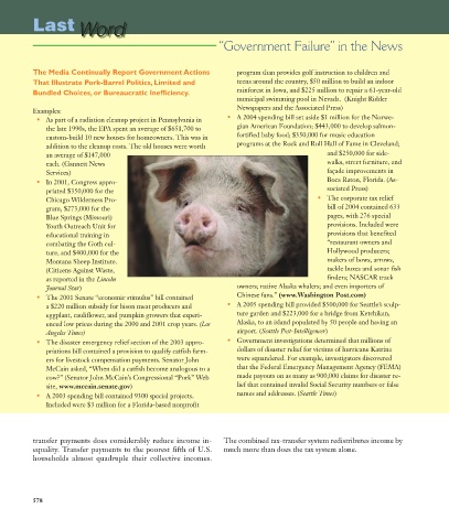 a $220 million subsidy for bison meat producers and • A 2005 spending bill provided $500,000 for Seattle’s sculp-