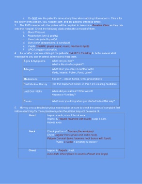 3. The EMS member with the patient will be required to take some Baseline Vitals as they ride