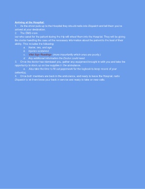 1. As the driver pulls up to the Hospital they should radio into Dispatch and tell them you've