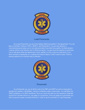 ASOP guidelines in the EMS Handbook. Once you reach this rank you are required to keep this