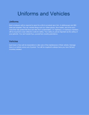 Each employee will be required to wear the uniform provided upon hire. A stethoscope and BSI