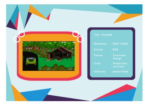 Title : PULANG Resolution : 1920 X 1080 Format : RGB Theme : Character Design Tools : Shape tool, Line tool Software : Adobe Flash