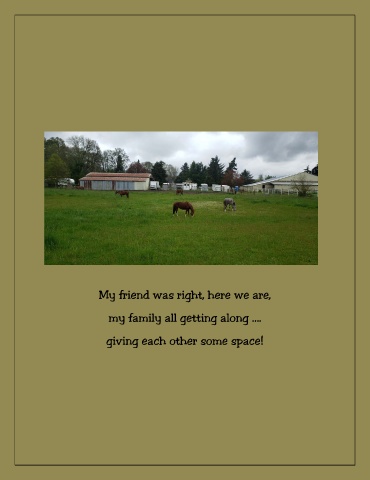 My friend was right, here we are, my family all getting along …. giving each other some space!