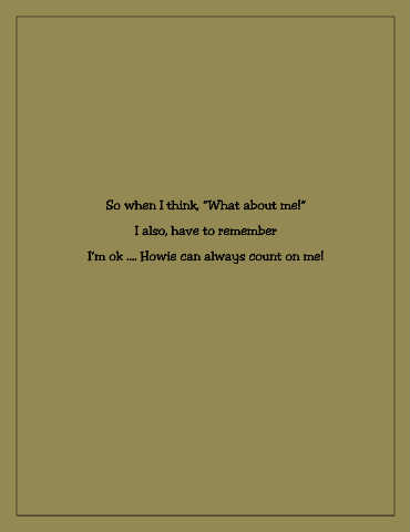 So when I think, “What about me!” I also, have to remember I’m ok …. Howie can always count on me!