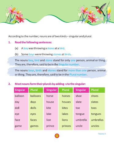 The nouns boy , bird and stone stand for only one person, animal or thing.