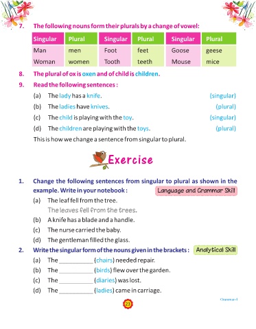 2. Write the singular form of the nouns given in the brackets : Analytical Skill